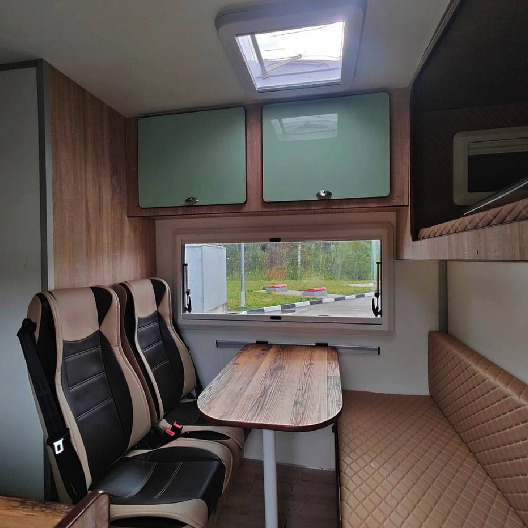 — это свобода с максимальным комфортом. Их главная особенность — надстройка над кабиной водителя, где размещается полноценная двуспальная кровать. Это не просто удобно: такая конструкция заметно увеличивает жилое пространство и помогает дополнительно зонировать интерьер.